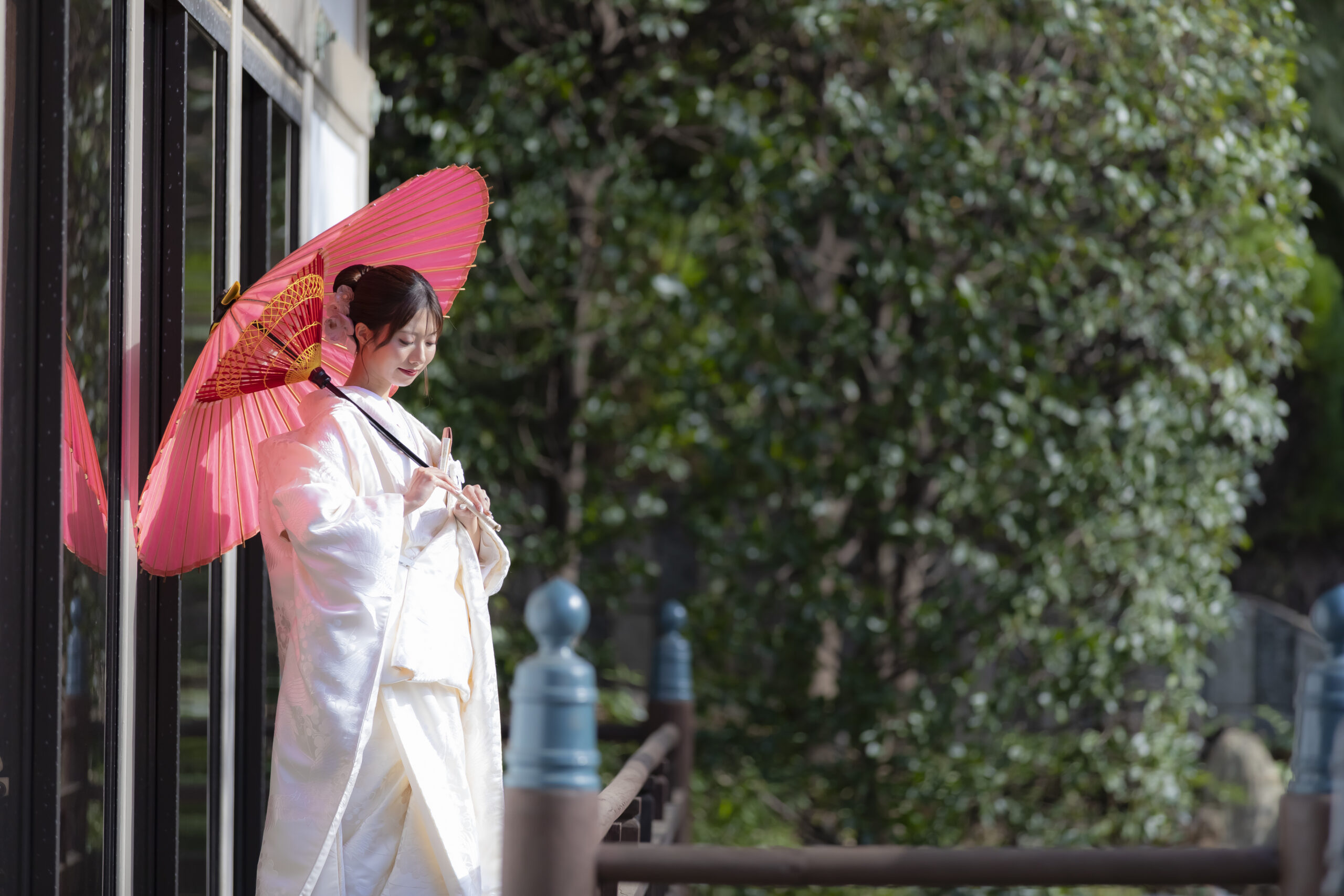 番傘を添えるのは、和装ならではの上品な彩り。 伝統の佇まいが、写真に静かな深みと奥行きを与えてくれます。